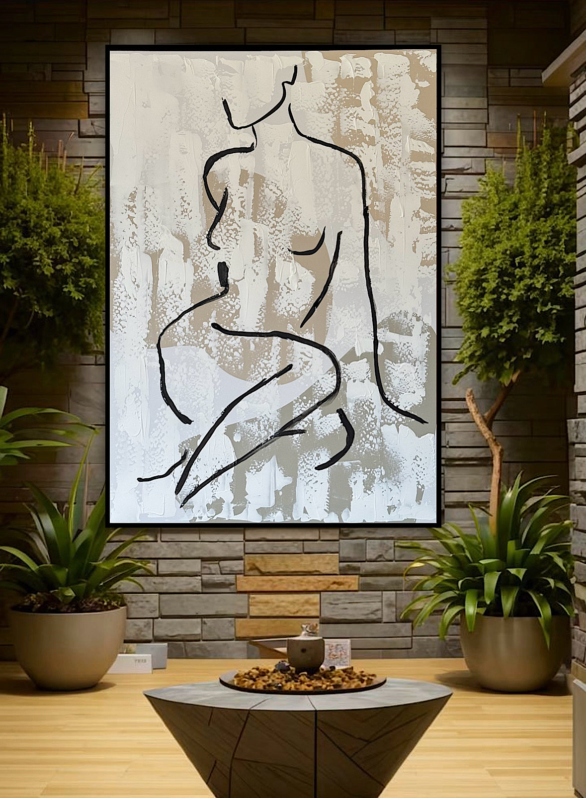 Framed in black Original Abstract contemporary Oil Painting On Canvas 70x50cm Nude textured Oka