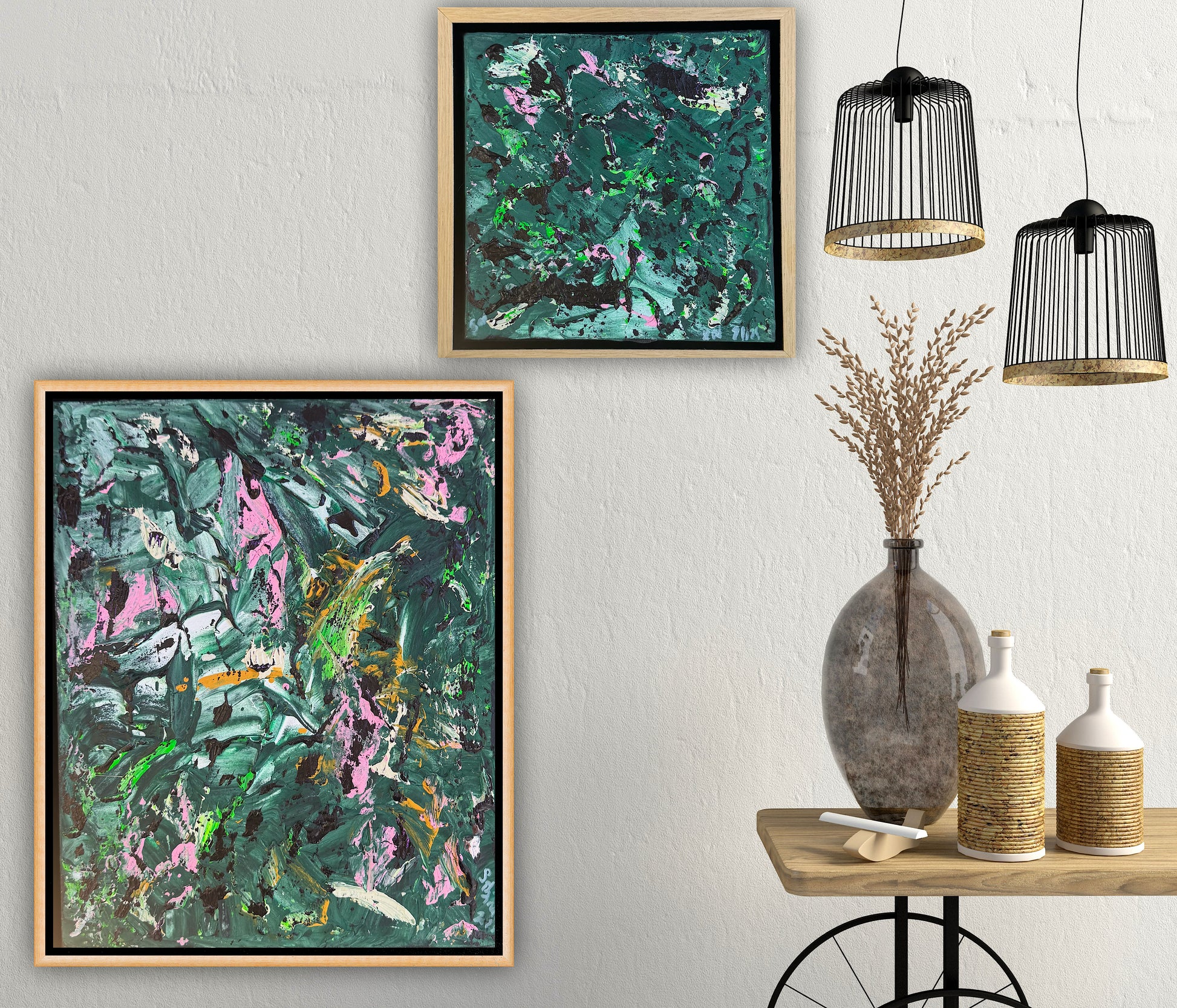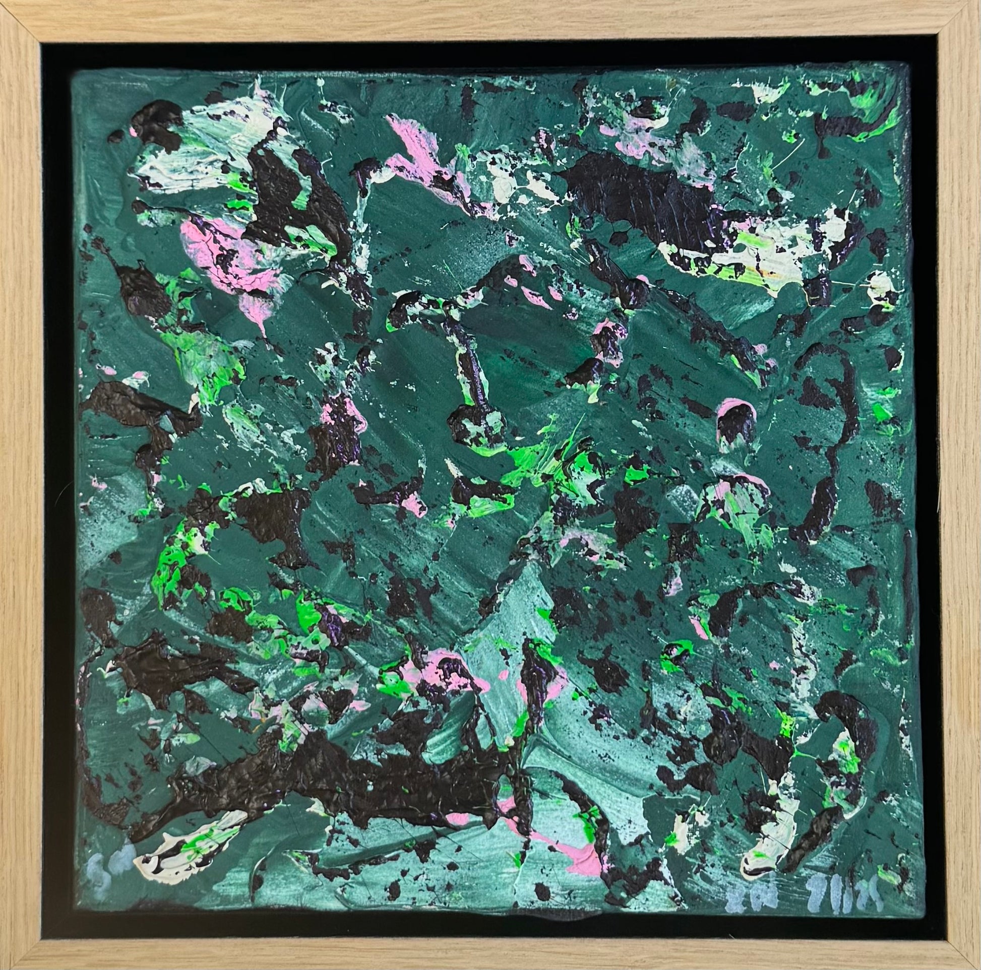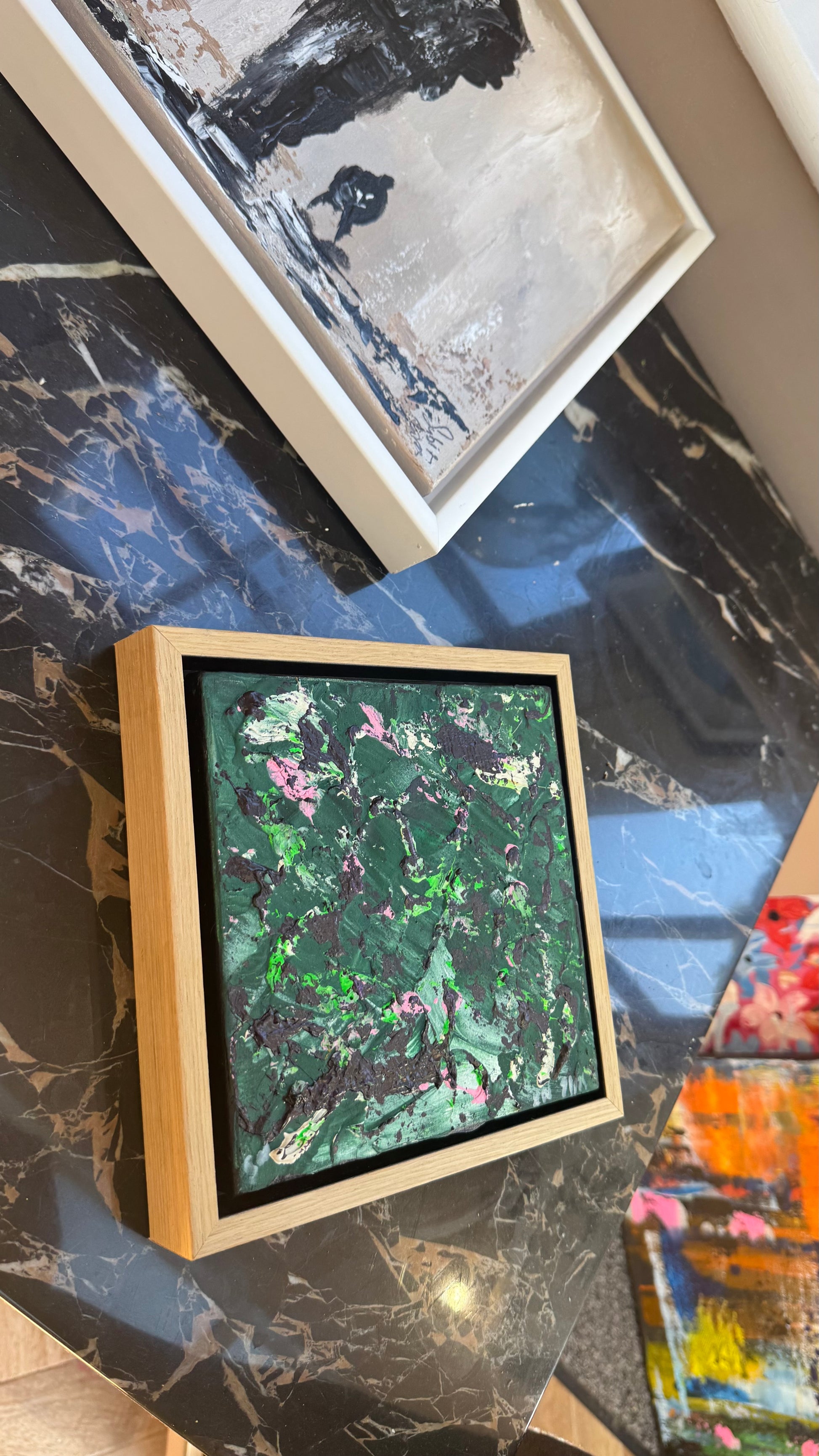 Framed in oak Original Abstract contemporary Oil Painting On Canvas 20 x 20Cm Orchard oka