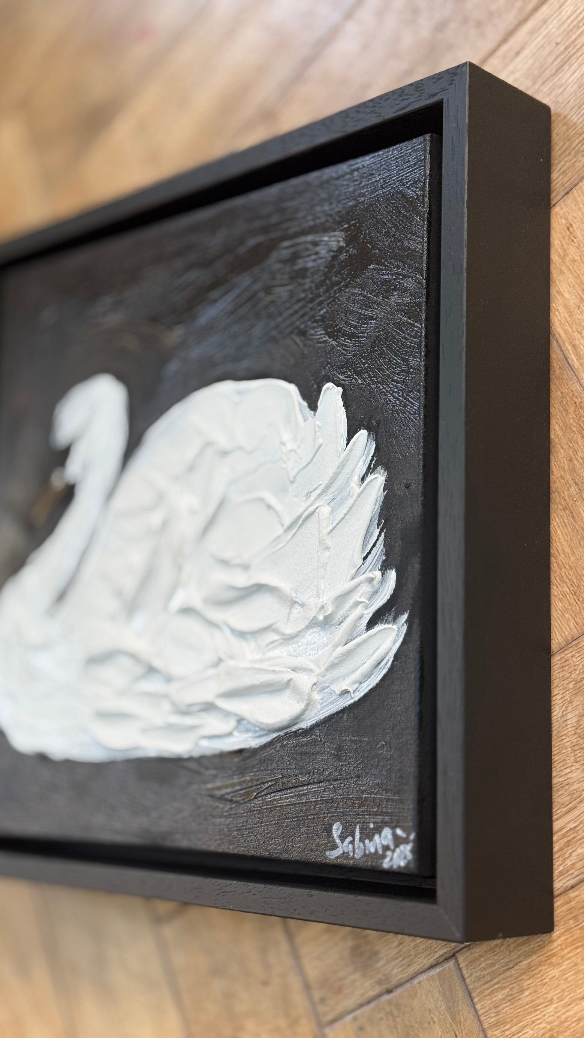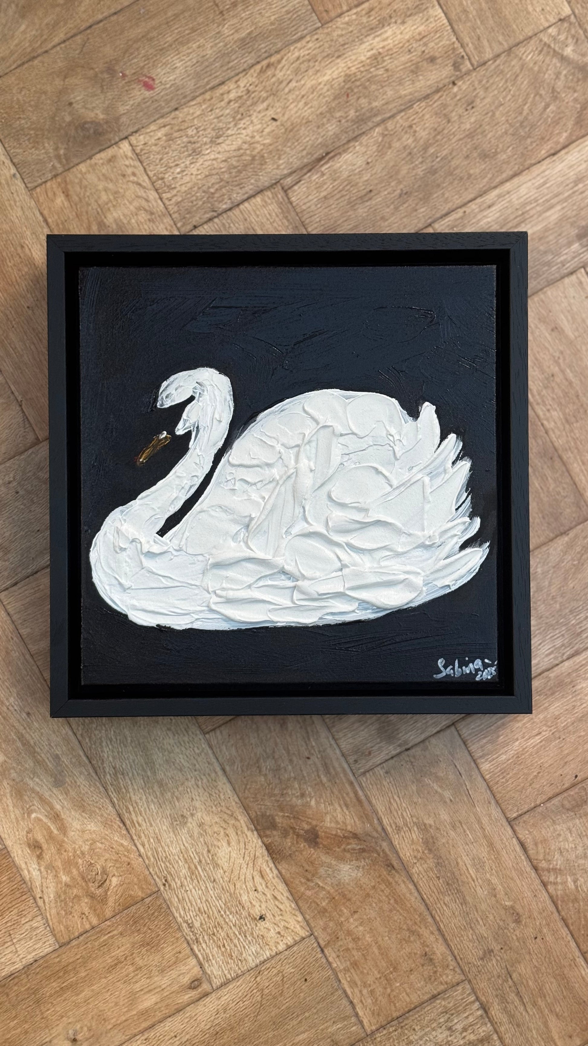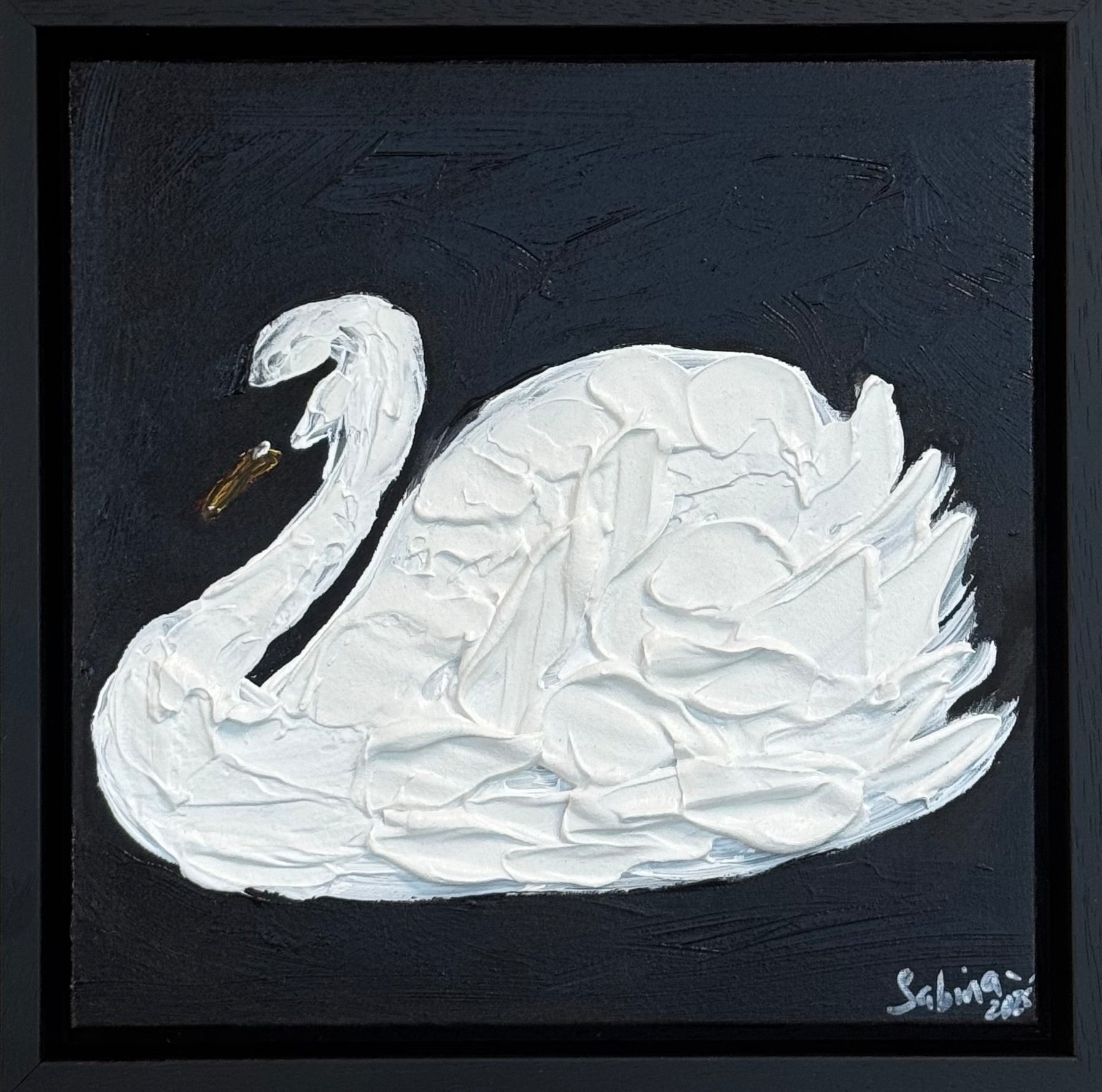 Framed Original Abstract contemporary Oil Painting On Canvas 30x30cm Swan Nocturne oka