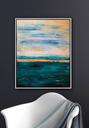 Framed Richter Style Oil Painting On deep Canvas 50x60cm Gold leaf ‘Seascape’