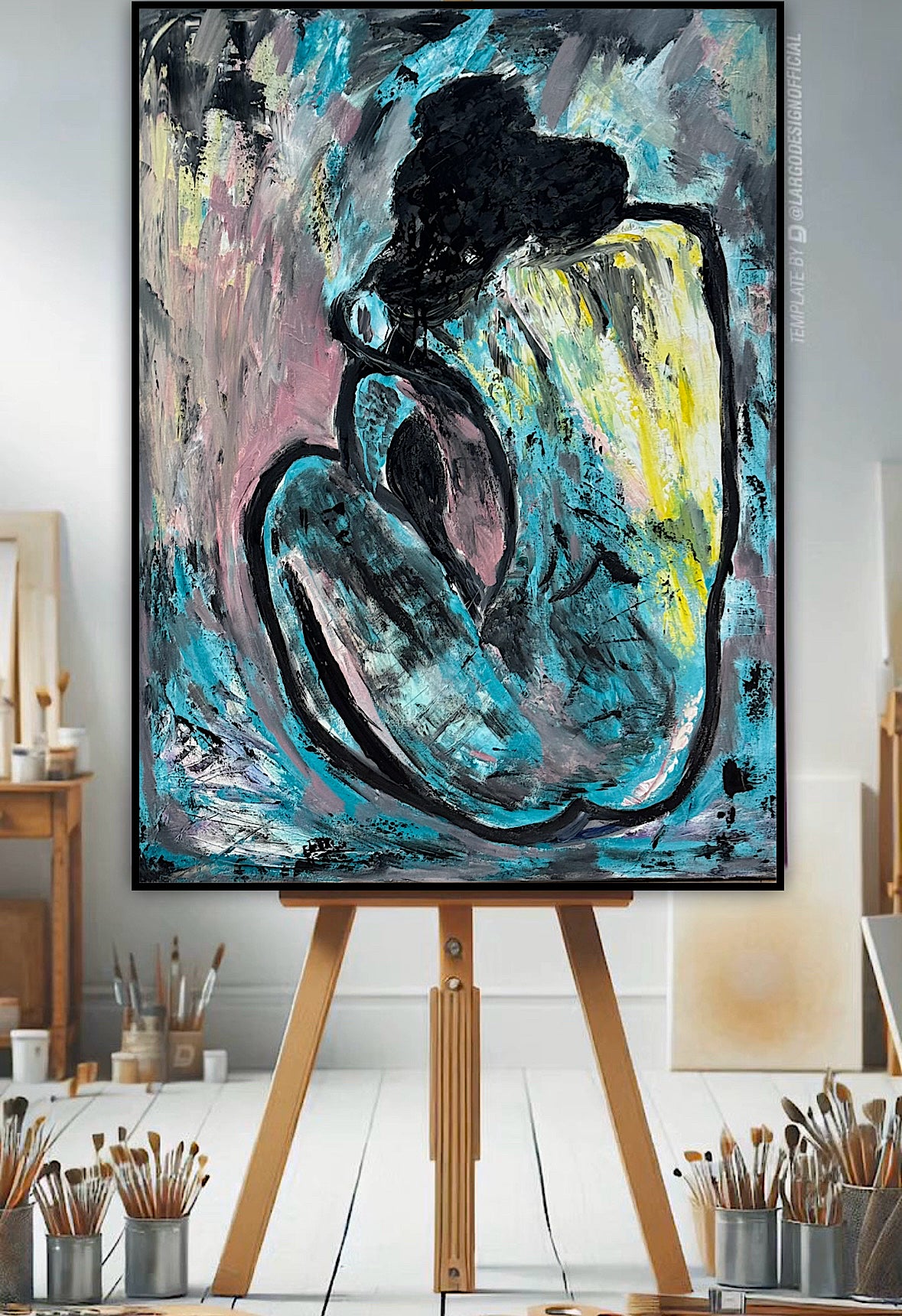 Original oil painting on 2cm deep edge stretched winsor and Newton professional canvas , Size 100 x 76cm, signed by the artist, 100 percent hand painted, will be delivered within 3-5 days. Ready to hang. 'Blue Nude'' Authenticity certificate provided with the purchase.,. Frame for illustration only